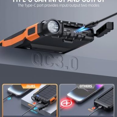 Power-Bank-Solar-Charger – 42800mAh Portable Charger,Solar Power Bank,External Battery Pack 5V3.1A Qc 3.0 Fast Charger Built-in Super Bright Flashlight (Orange)